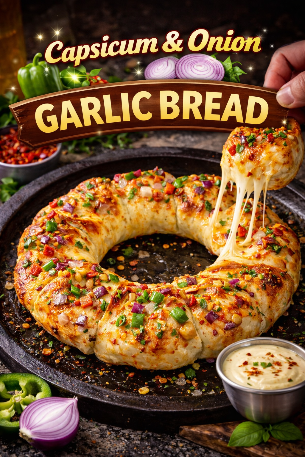 Our Capsicum & Onion Garlic Bread is a flavorful twist on classic garlic bread. Freshly baked bread slices are coated with rich garlic butter, topped generously with crunchy capsicum and thinly sliced onions, and layered with premium melted mozzarella cheese.