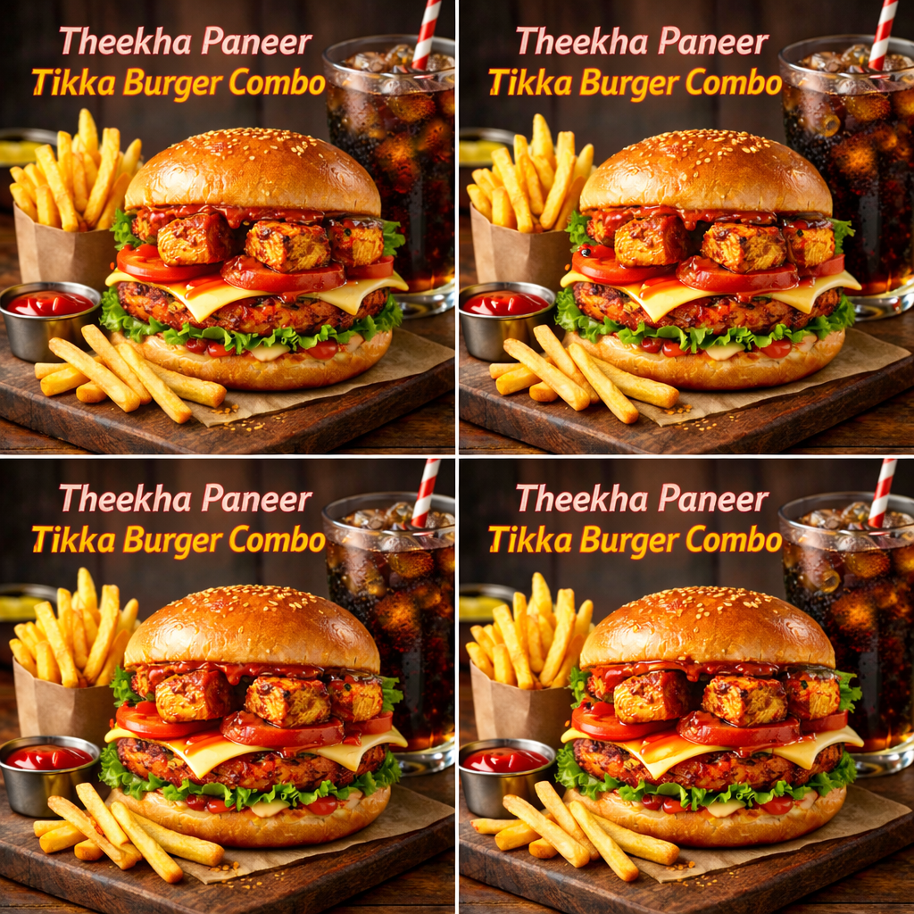 Get ready for a bold and spicy experience with our Theekha Paneer Tikka Burger Combo 🍔🔥